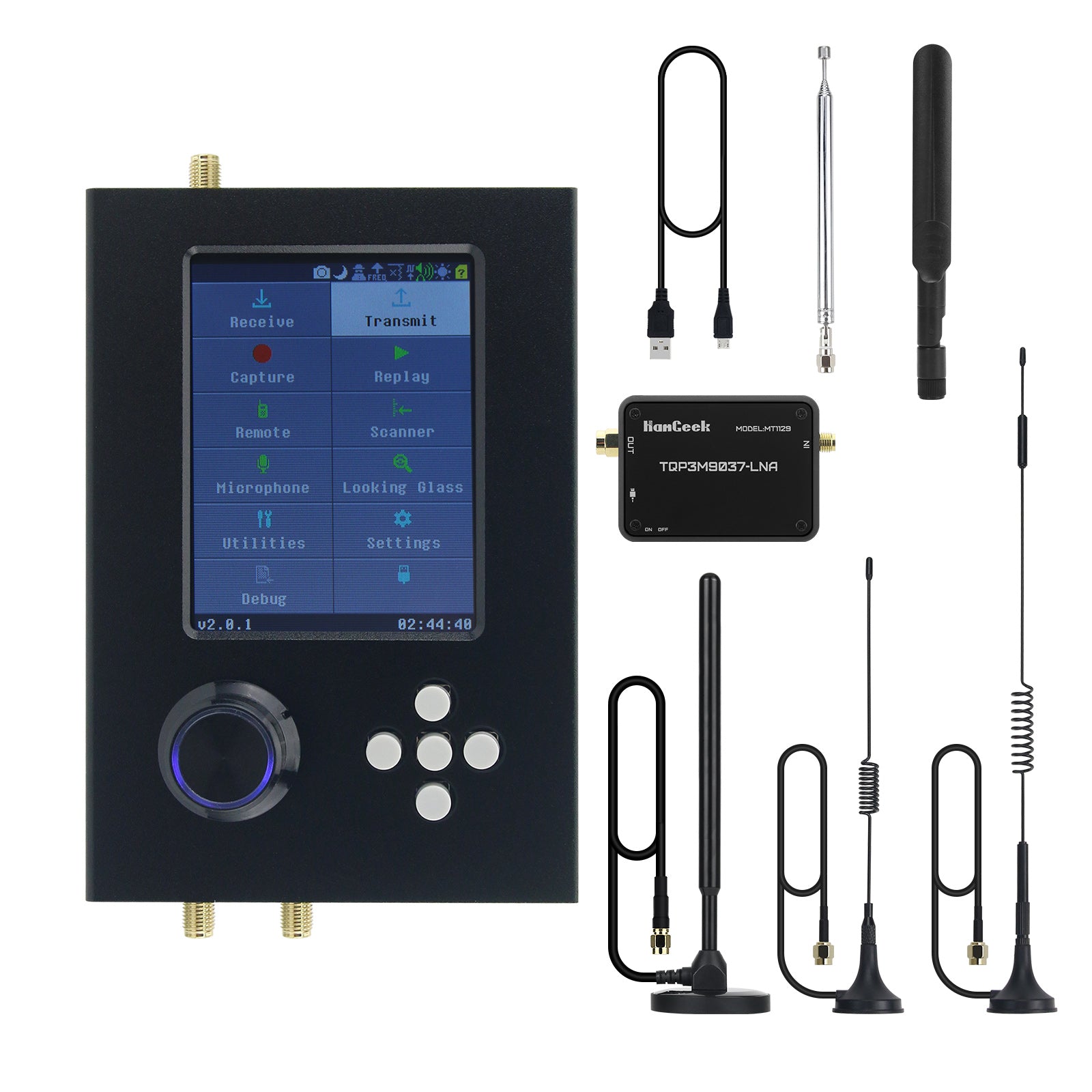 HamGeek 1MHz-6GHz HackRF One R10 V2.0.x + Portapack H2M w/ Built-in Speaker + 5 Antennas + USB Cable (with/without LNA